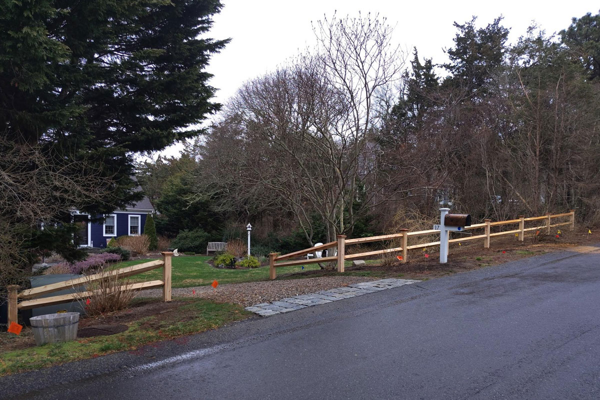 What a classic Cape Cod look with this new cedar Bass River 2 rail style fence we recently completed for a customer. It really provides a nice look to the front of this lovely house.